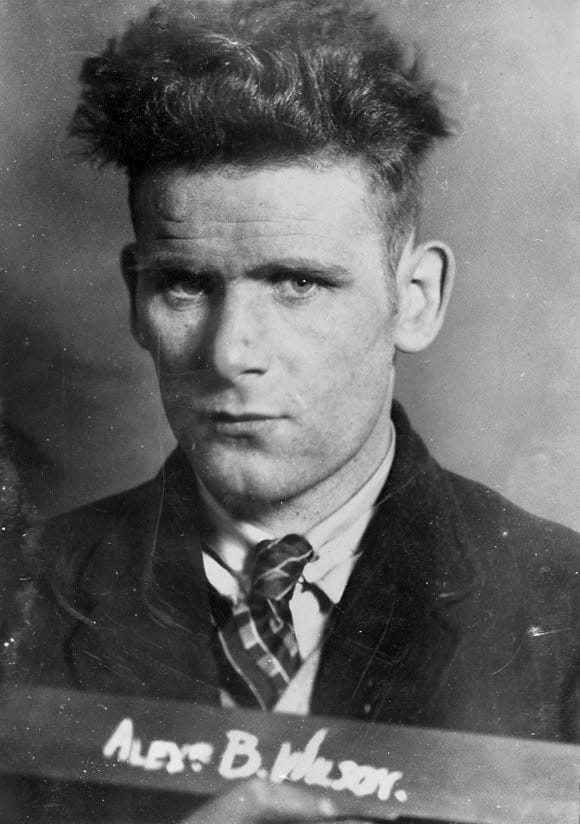 Also mixed in throughout the pages are a group of men known to the detectives as ‘whitehats’. One such ‘whitehat’ was 31-year-old Alexander Wilson. Originally from Kilmarnock, he was well-dressed and could often be found loitering in toilets, theatres, picture houses and dance halls. In his mugshot, Wilson stares at the camera with apprehension, a striking shock of curly hair, like a young Bob Dylan or 1980s indie kid. There appears to be a mark on his forehead — a bruise, perhaps, or maybe a smudge on the camera. The police were not only interested in Wilson because he was gay and a prostitute — he was also accused of being a blackmailer. Whitehats targeted ‘innocent’ men in bars, theatres and toilets for sexual liaisons, then blackmailled them into keeping their sexuality secret. ‘Poof,’ McCartney has written as a descriptor alongside Wilson’s photo.