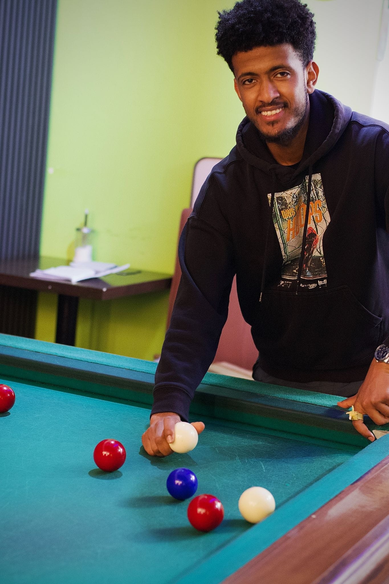 Take, for example, what’s next door to the Saracen Head — the Family Cafe, which serves Ethiopian and Eritrean cuisine. At the back of the cafe, I find a dozen men enjoying a game of Boccette, an Italian form of pool played without cues and with five tiny pins in the middle of the table. Just a coincidence? Further down the Gallowgate, almost every seat is occupied at Ghinda Cafe. It’s warm inside, partly from the fan heater above the door, but mainly from the sheer number of people. Like the Family Cafe, it’s proudly Eritrean.