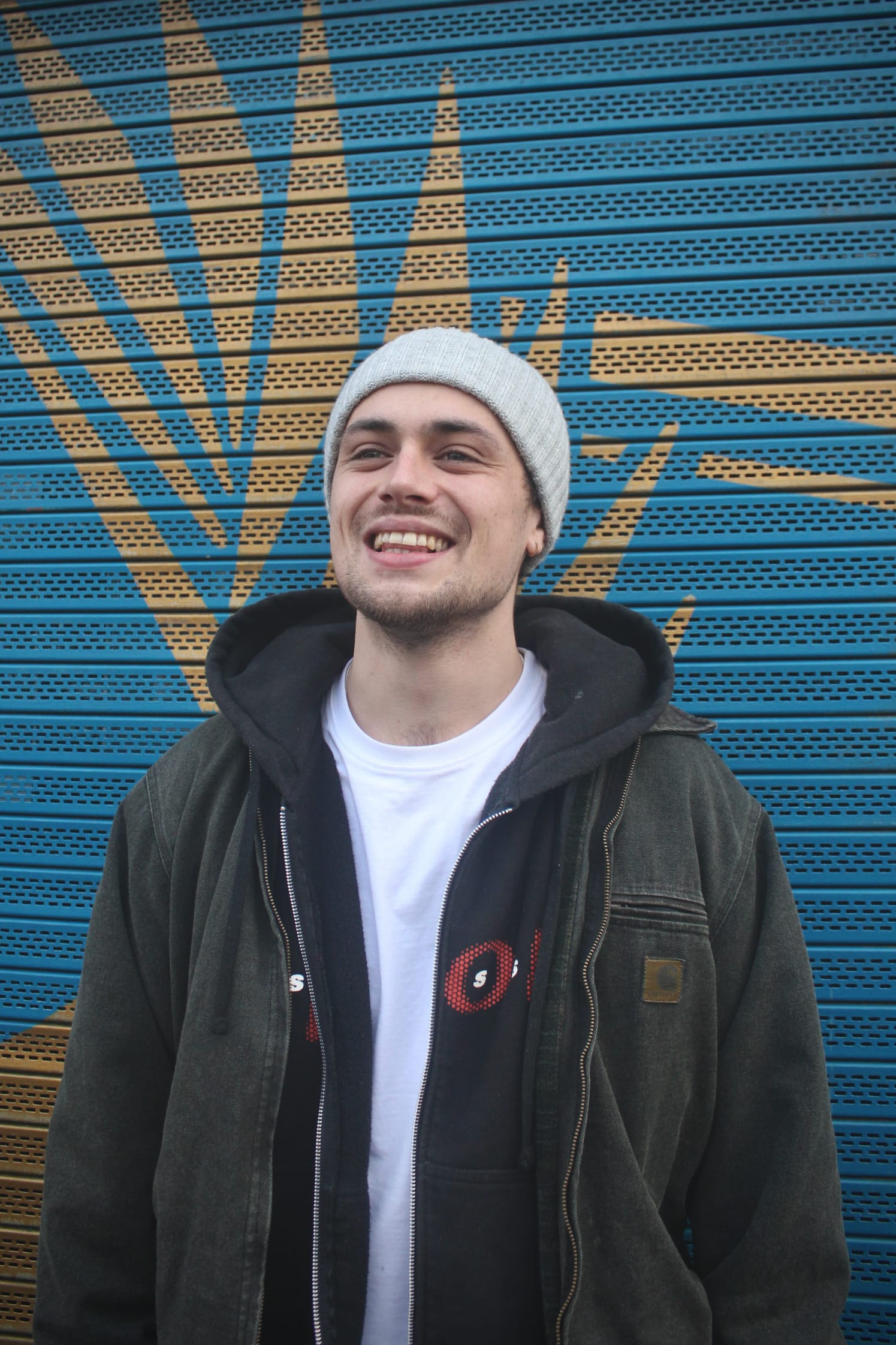 Despite Shortall’s success, and slick trappings, cold hard cash is more elusive than clout. Take today’s outfit; from waist up he’s decked out in a Carhartt jacket, black hoodie and grey wool hat — a beanie has become his signature accessory. As has a professional relationship with Carhartt.