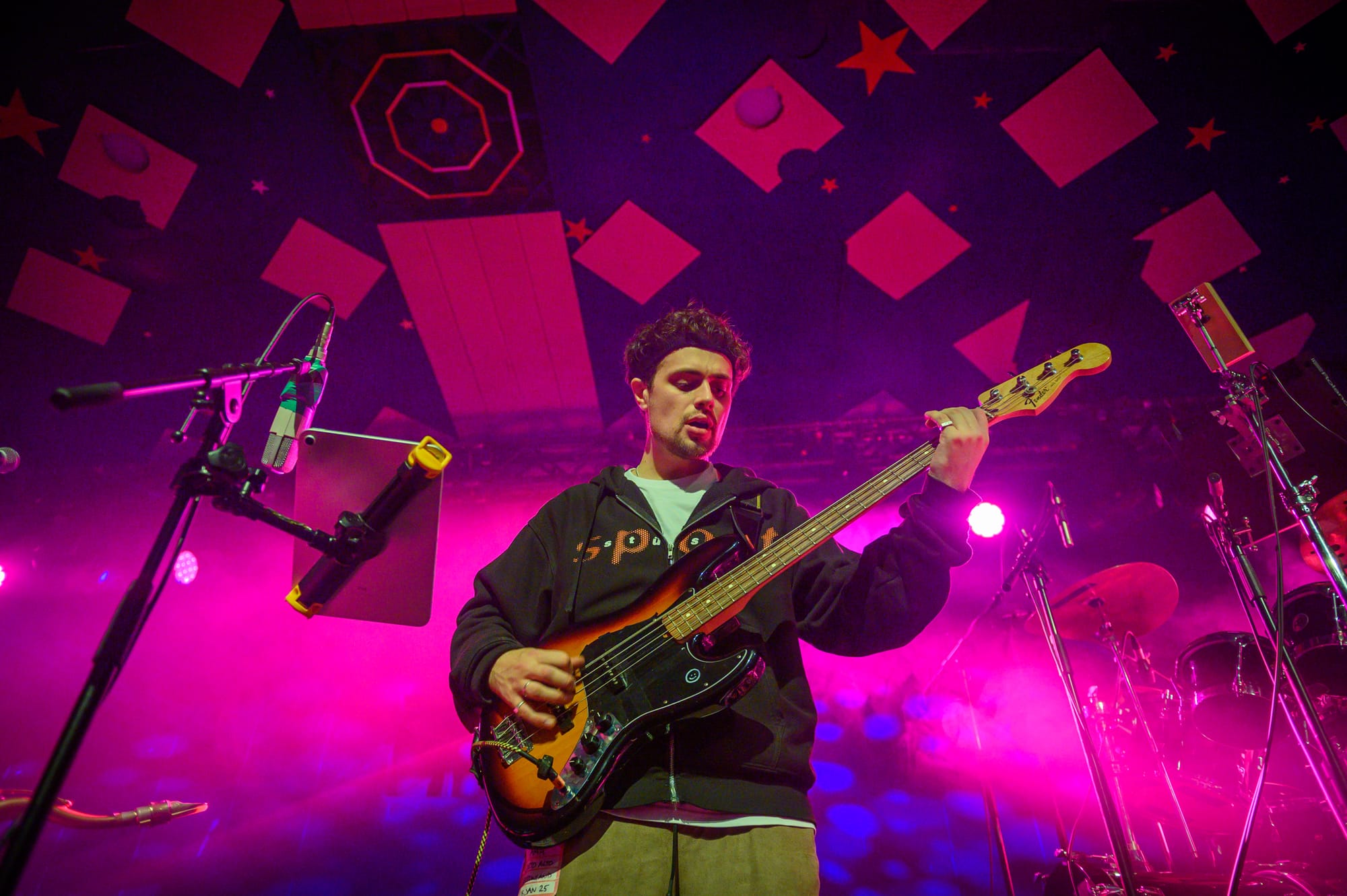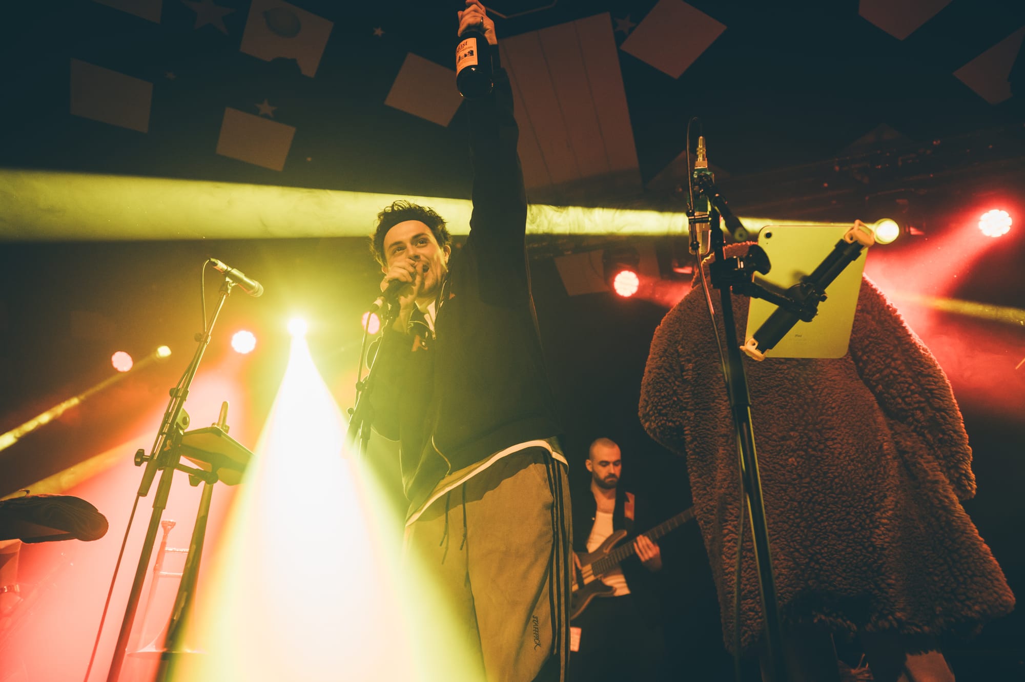 He wore sunglasses, a hoodie, a baseball cap and baggy trousers with his saxophone round his neck — the teacher dressed like his pupils for one night only. “I was looking at [my drummer] Graham, we both just started laughing at each other,” Shortall tells me, scooping eggs into his mouth. “We're playing a Jersey club beat at the Barrowlands, and Tommy's playing saxophone. I was like, How the fuck has this happened [...] It felt like a big circle moment, not to be cliché, but, you know, it was cool to do that.”