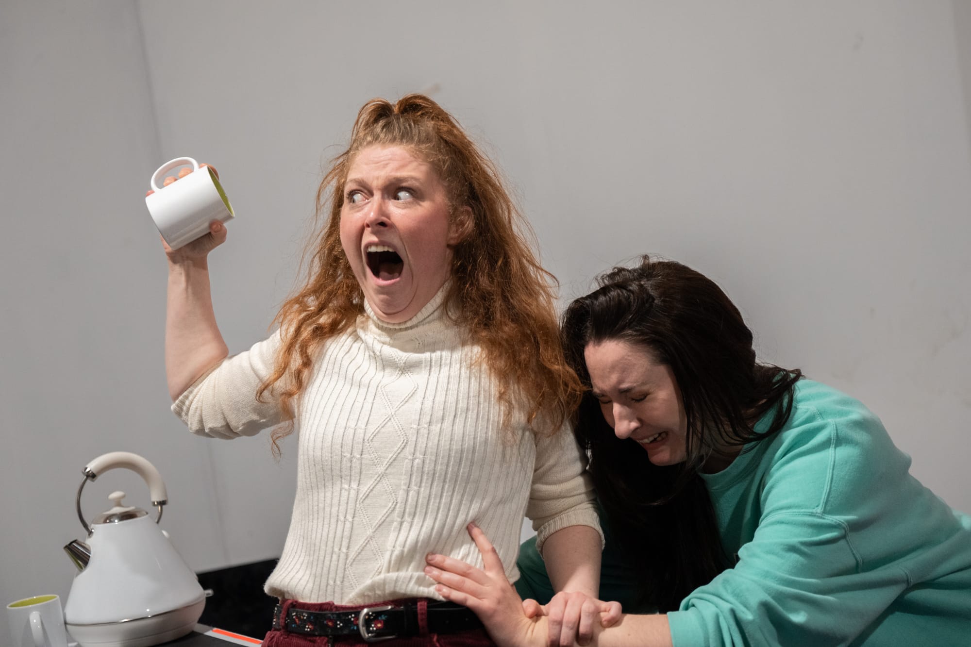 It’s a Wednesday morning in a bland rehearsal room on Bath Street, and actors MJ Deans and Chelsea Grace are slowly working their way through the opening scene of Eilidh, Eilidh, Eilidh, a new play by Lana Pheutan. They’ve been rehearsing for 10 days, but yesterday they had their first — and only — walk-through on the stage where they’ll perform the piece next week. The experience left them with some questions. “The ceiling above the stage is all in different levels, so you have to work a wee bit harder in some areas, and the sight lines are difficult at points,” says Pheutan, who’s also directing.
