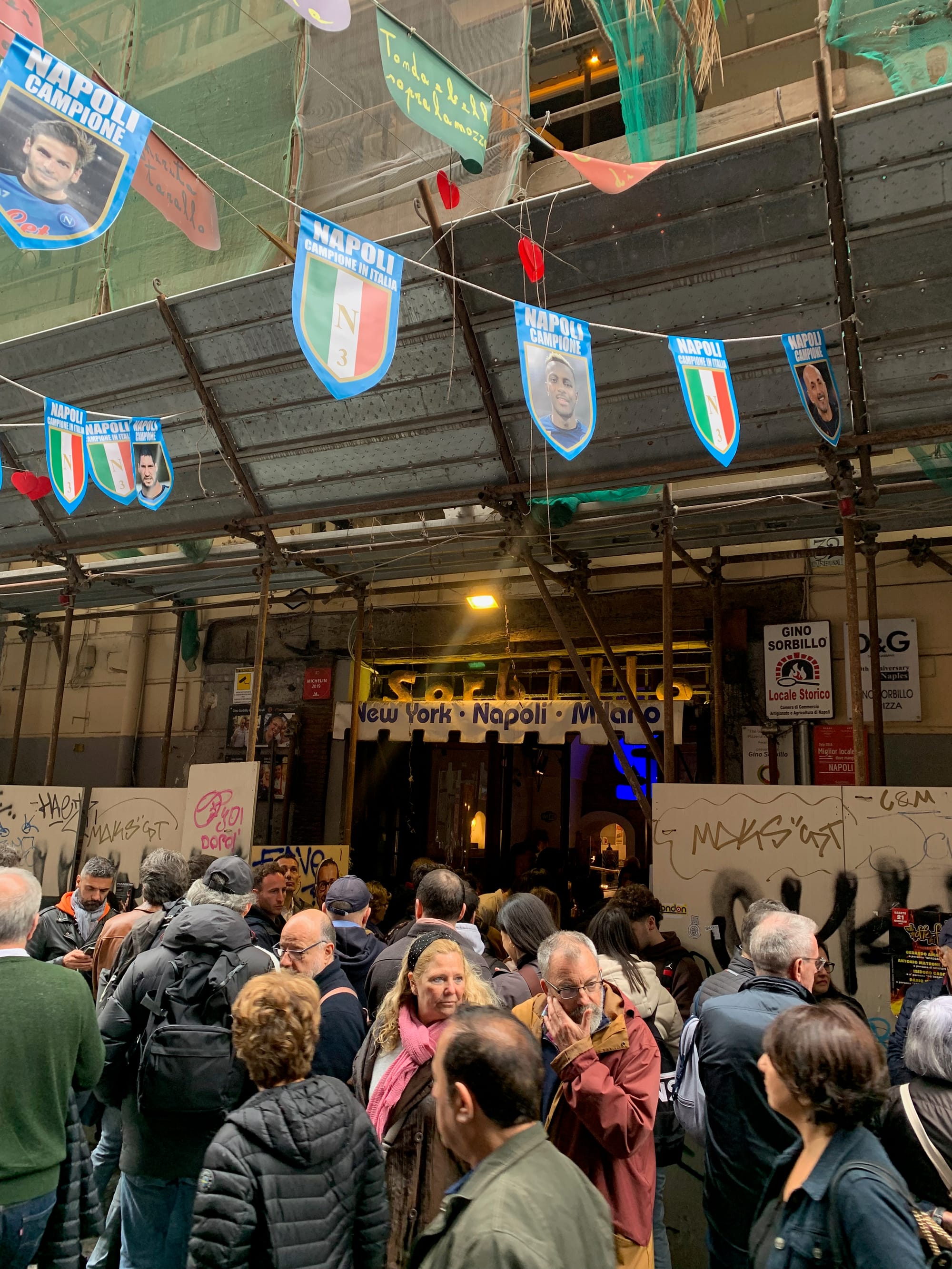 The best pizza of my life was also the most stressful. The crush of tourists had gathered on a narrow street at lunchtime, sky blue Napoli bunting draped over scaffolding above our heads. Barely visible, wedged between graffitied hoarding boards, the sculpted gold lettering read ‘Sorbillo’. Affixed pride of place to the left of the entrance, above pictures of its owner with Italian celebrities, was a Michelin plaque, somewhat incongruous with its surroundings.