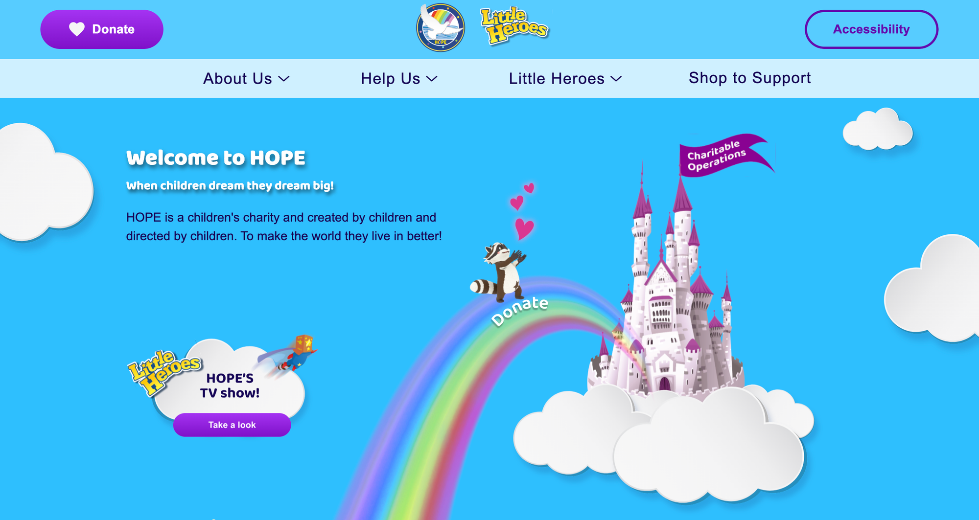The charity also says it produces “augmented reality education” and a TV show. And it says it’s a charity “created and directed by children”. Its website features Ziggy, a friendly cartoon raccoon who appears on pages about endangered rhinos and the fragility of marine ecosystems, and pages which say that Hope has been committed to “helping the victims of disaster since 2004”. Many of the rainbow-coloured pages don’t work and have pop-ups that are just blank. There are also links to donate money and brief mentions of products like “Earthy Peak”, “Eclipse Surf Wear”, and “Golden Wear”, the proceeds of which support environmental, disaster relief, and homeless causes respectively.