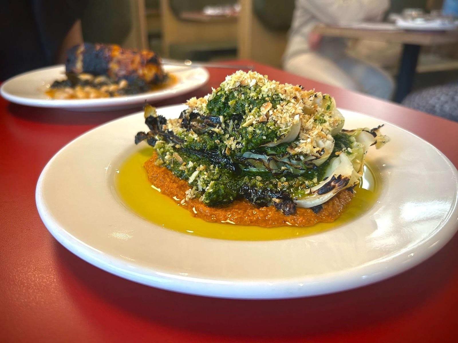 I’ve been dying to try the latest in Finnieston’s long line of small-plate natural wine bars-cum-restaurants (sue me). However, as a vegetarian, I was somewhat put off by the understandably meat-heavy menu; Corner Shop has a distinctly Basque and Catalan feel. Imagine how ‘seen’ I felt when I was treated to a meal there recently, thanks to the fact that every Monday they now serve a veggie-forward menu, joining Gloriosa just down the road who do an entirely vegan menu at the start of the week. I loved lots of the dishes: the croquetta, a garlic and herb flatbread, grilled hispi cabbage with romesco. One note though: by the end of the meal I was rather glad to have ample water on the table, as the food was firmly on the salty side. All in all, a delightful wee meal, and the waiter even wrapped our food up into three majestic tin foil swans (you don’t even get that kind of service in the Chip these days).—Robbie.