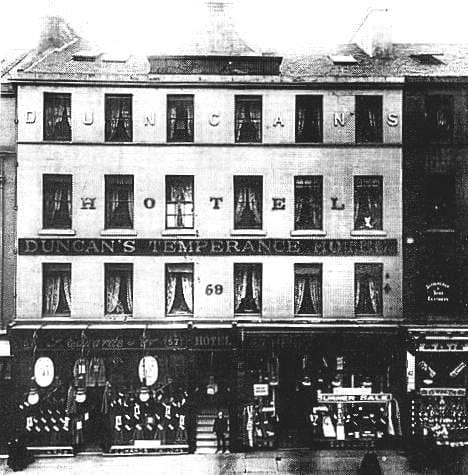 No, the oldest longest-standing ‘heritage’ property on Union Street — to our knowledge — is number 59: the Rennie Mackintosh Station Hotel. Since the very early nineteenth century, the Rennie Mackintosh has existed as a lodging house in one form or another, and from the 1870s onwards, it was a temperance hostel, offering an alcohol-free place to stay.