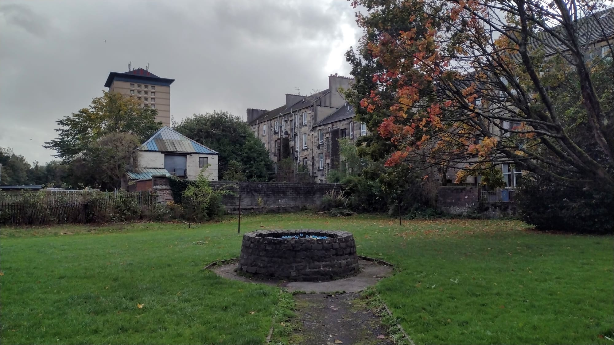 Round the corner is a rumoured witches’ well, standing on a patch of green, sandwiched between two tenement buildings. The name is a misnomer; Gayle Pollock, trustee of charitable organisation, Renfrewshire Witch Hunt 1697, tells me that the structure is not in fact a well and has “nothing to do with the witches. It’s a flooded ventilation staff from Victorian minings.” But it does indeed stand on the last remaining patch of what would have been Paisley’s Gallow Green.