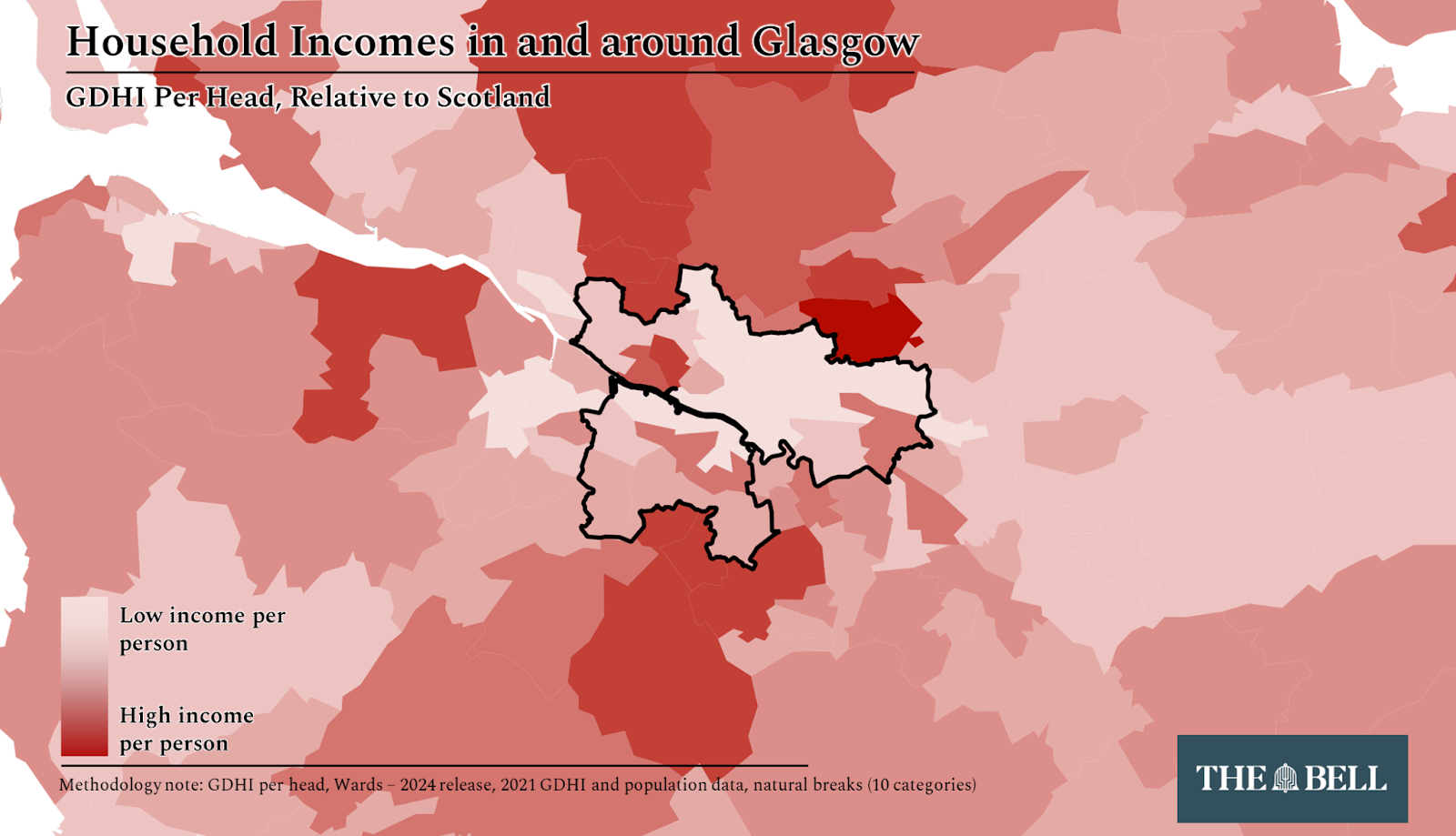 Glasgow is a rich city. So why doesn't it feel like it? This was the question we asked data genius James Gilmour to investigate and boy did he come up with the goods. Maps galore demonstrate that areas just outside the city's borders, like Giffnock and Bearsden, have become akin to tax enclaves while Glasgow itself isn't seeing the fruits of its economic strength. Much to ponder.