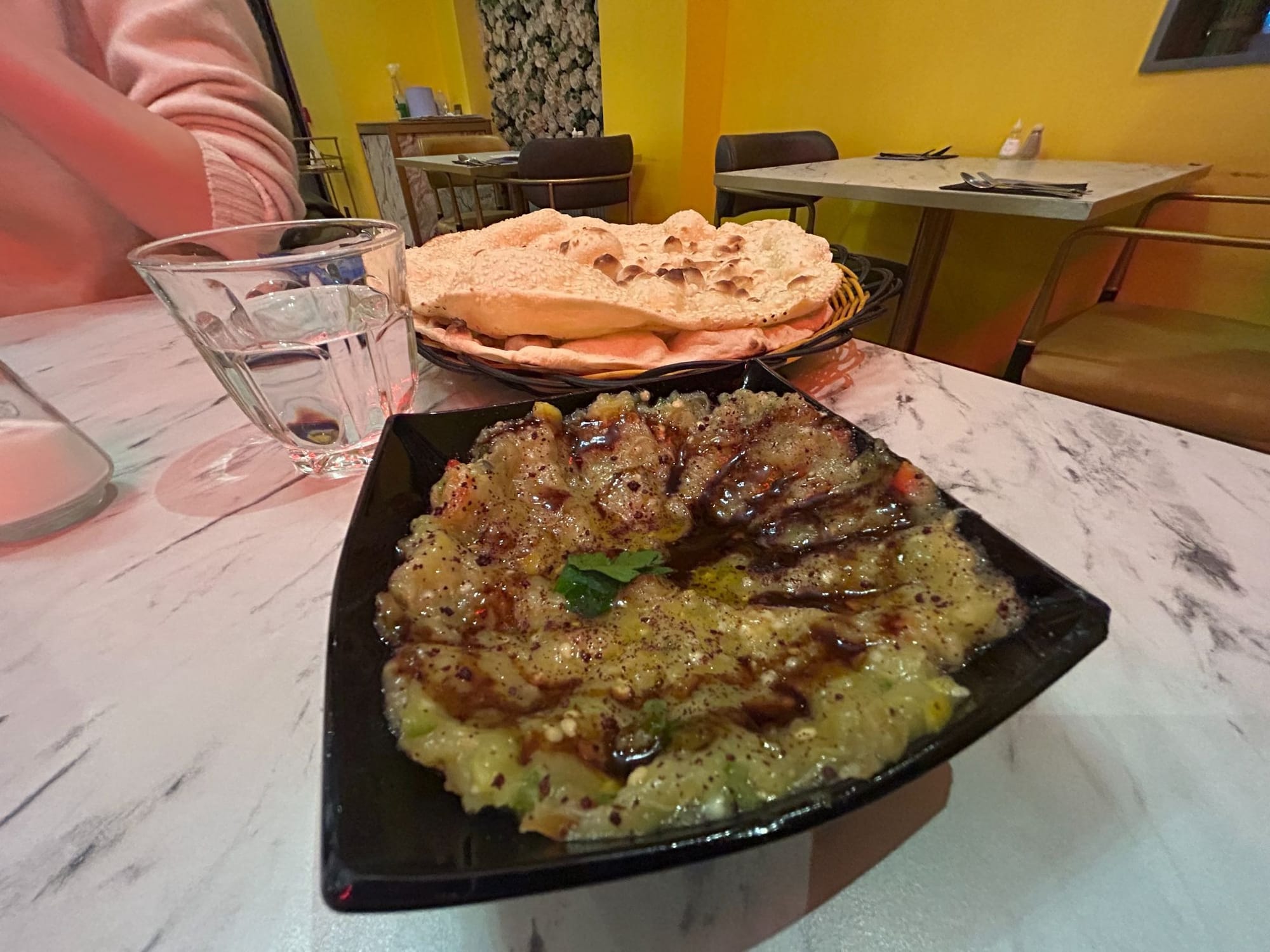 I found myself in Tradeston earlier this month for a Glasgow Film Festival screening (Josh O’Connor as a sad, sexy cowboy in Rebuilding, if you’re asking). My sister and I opted for Shawarma King’s sit-down outpost on Paisley Road West, for a truly weird dining experience. The instruction to the interior designer seemed to be: make everything gold, or failing that bright yellow — from the walls and electricity sockets to the lampshades and cutlery. Fair play, I have no truck with gaudy interiors. What I do have truck with, however, is a Middle Eastern restaurant inexplicably running out of falafel at 7pm on a Wednesday night. Janey went for the shawarma, which was disappointing (certainly not up to the high standards of the OG King Street premises). My options limited, I opted for smoked aubergines and some sesame bread. Both were good, if not a meal. The service throughout was patchy, aloof and slow. The food took almost thirty minutes to arrive. As we were leaving, the waiter apologised, telling us the falafel were now back on the menu. Either way, we won’t be back.—Robbie