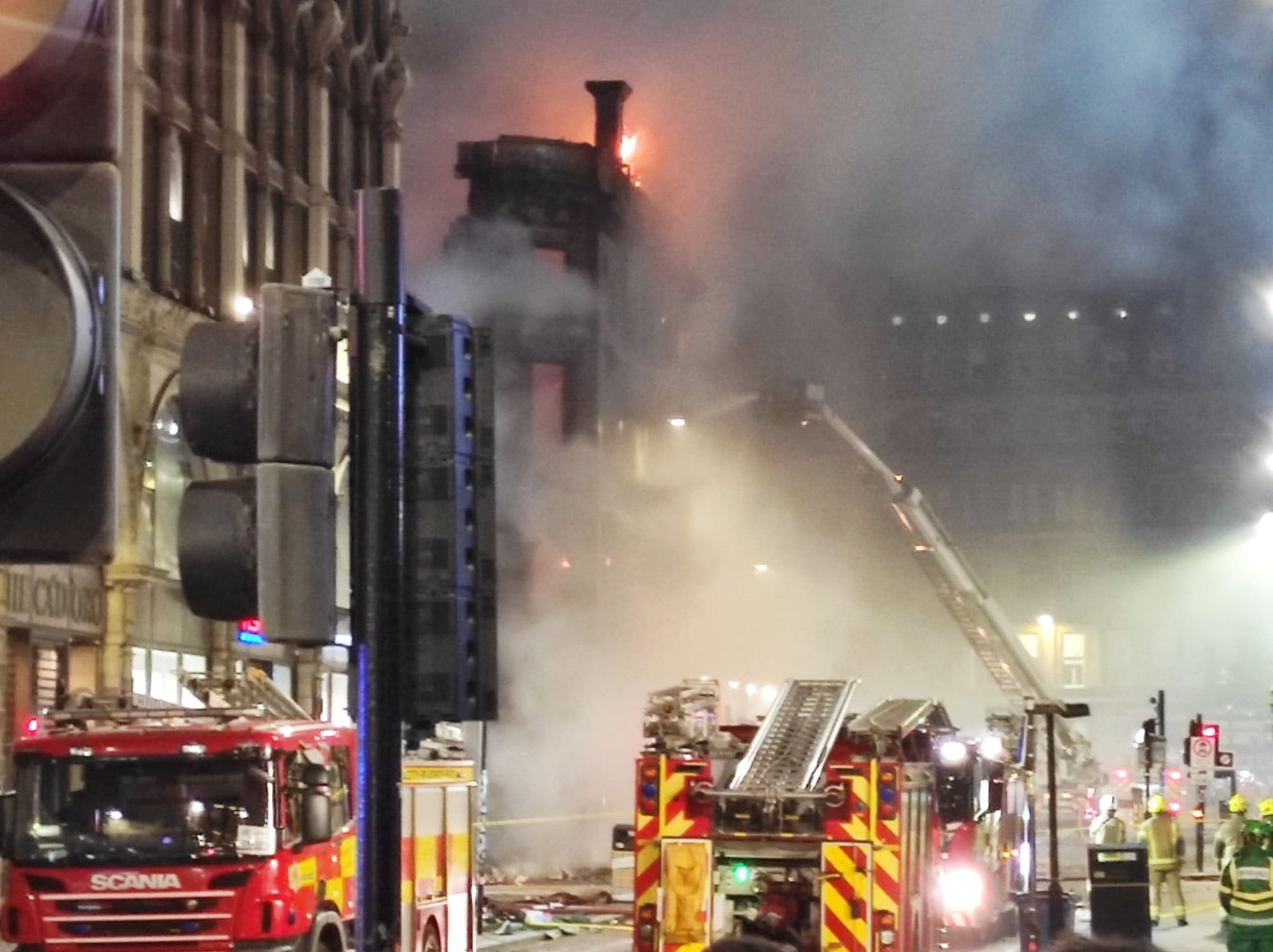 Six hours later, the nuisance had snowballed into a catastrophe. When Calum arrived on the scene at 10pm, 105 Union Street no longer existed. Between 6pm and 8pm, the fire became a raging inferno. Flames had swallowed up the building the blaze had started in; it had collapsed into rubble around 8.30pm. Now Union Corner’s famous dome was under siege.