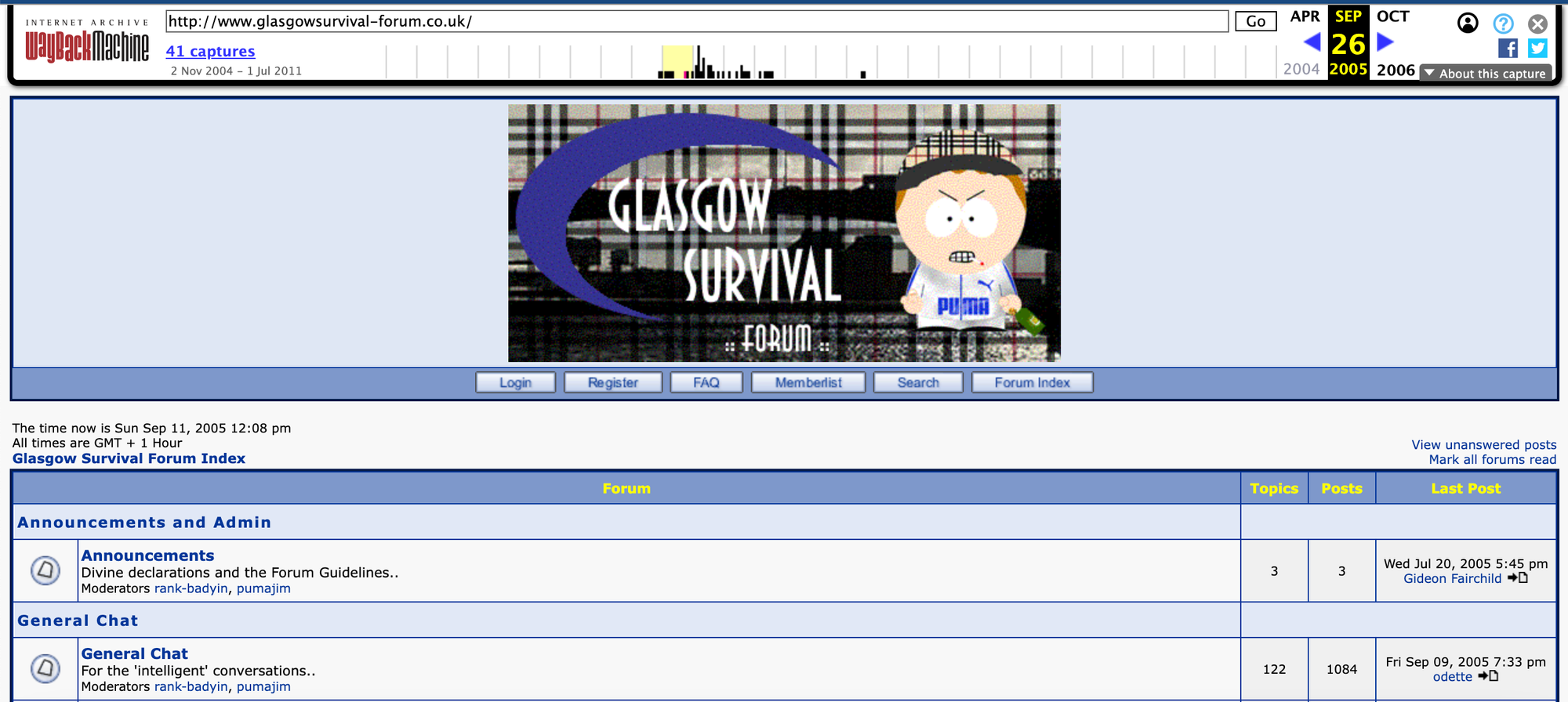 Some of the most popular websites in the West of Scotland at the time were forums like Hidden Glasgow (still active), the Bloodbus blog (the anonymous author of which would go on to publish a book, then subsequently shut down the blog to juice sales), subcrawl.co.uk (currently inactive but primed for a relaunch) and Limmy.com (which now redirects to Limmy’s Twitch stream), the website of Glaswegian comedian and icon, Brian 'Limmy' Limond. All of these, as it happens, featured in the recommended section of another key site: glasgowsurvival.co.uk.